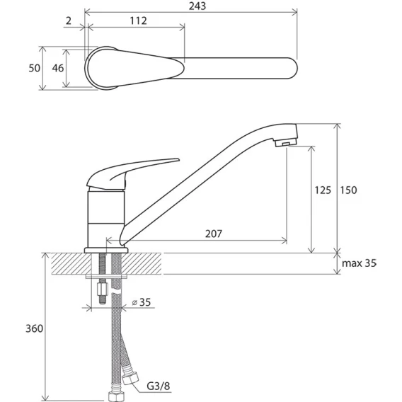 • подходит: к кухонной мойке или большому умывальнику