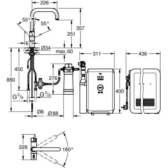 • GROHE Blue Смеситель однорычажный для мойки с функцией очистки водопроводной воды