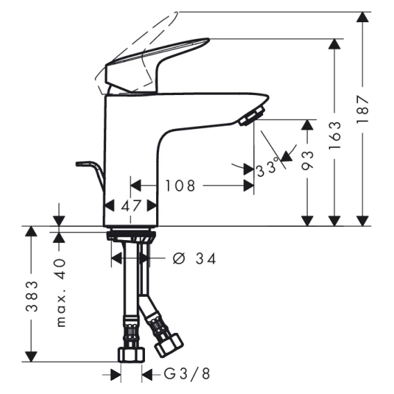 Смеситель для раковины 100, с донным клапаном Hansgrohe Logis 71100000