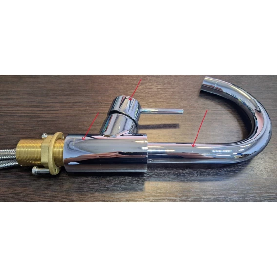 • Присутствуют незначительные потертости на изливе, корпусе, ручке смесителя.