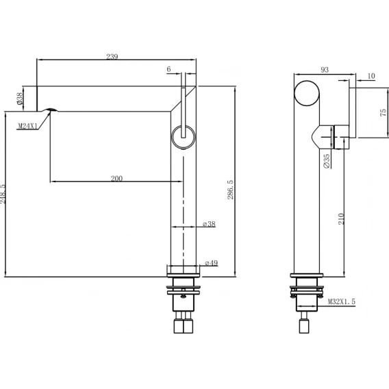 Высота излива 24.85 см