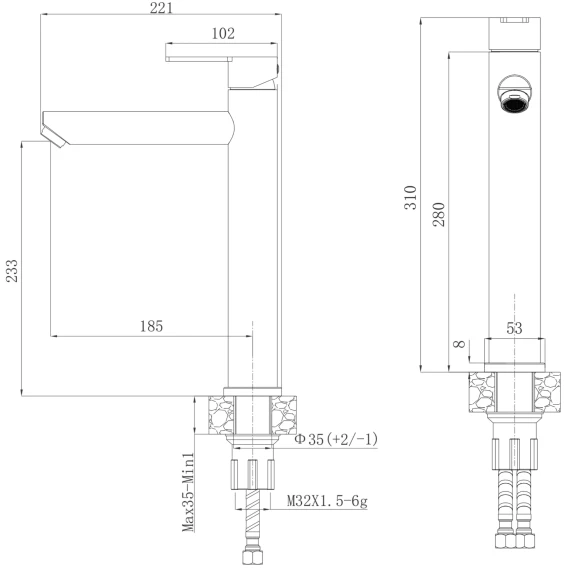 Высота излива 23.3 см