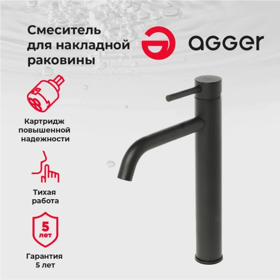 Смеситель для раковины Agger Zest A0712144 без донного клапана, черный матовый