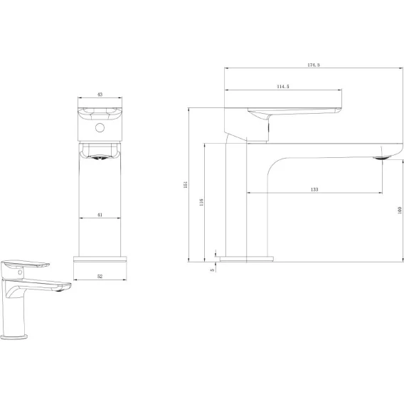 Смеситель для раковины Allen Brau Eclipse 2.0 5.E1A01-00 без донного клапана, хром