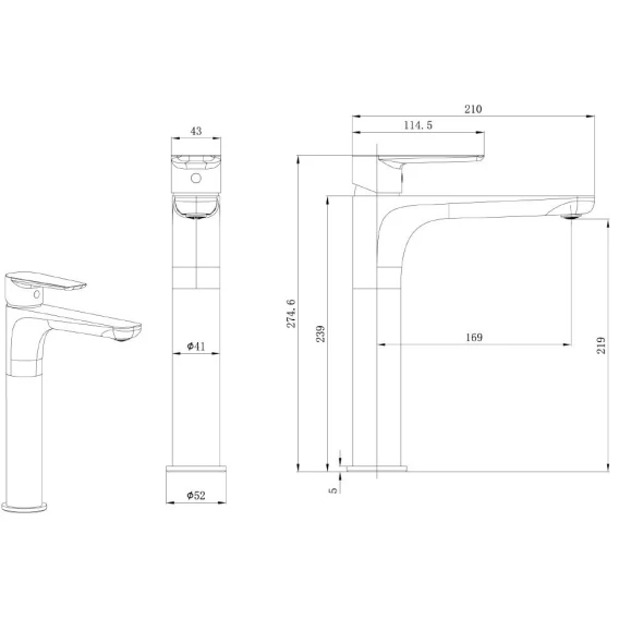 Длина излива 16.9 см