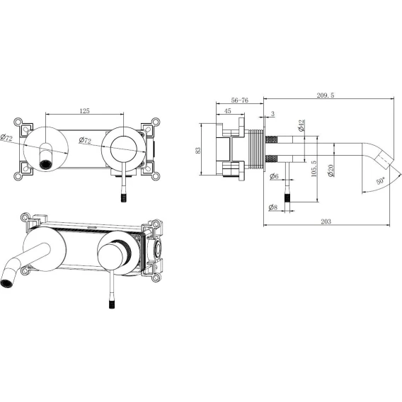Длина излива 20.3 см