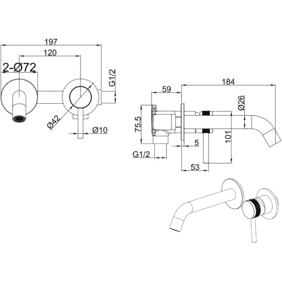 Длина излива 18.4 см