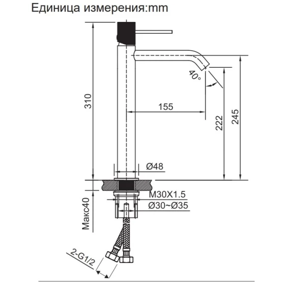 Длина излива 15.5 см