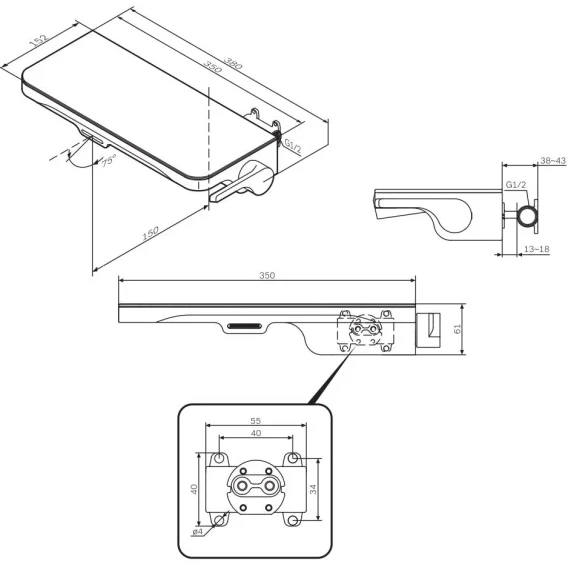 Длина излива 15 см