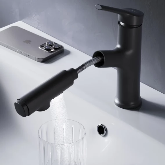 Смеситель для раковины Am.Pm X-Joy S F85B02922 без донного клапана, черный матовый