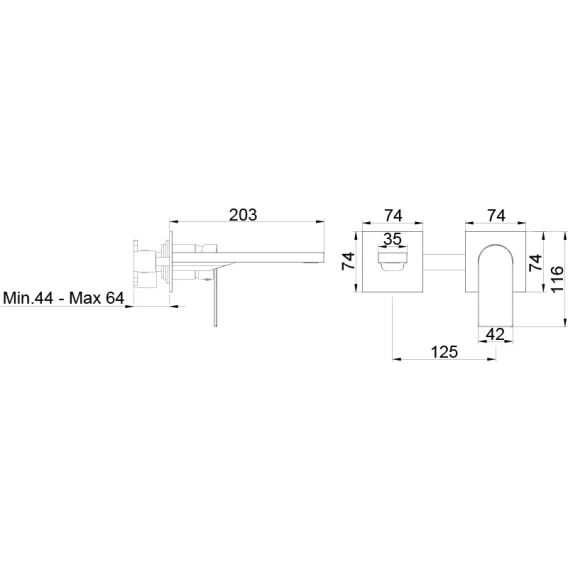 Смеситель для раковины AQG Alpha Two 01ALC180NG встраиваемый, черный матовый