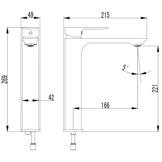 Смеситель для раковины AQUAme Monza AQM6314MB без донного клапана, черный матовый