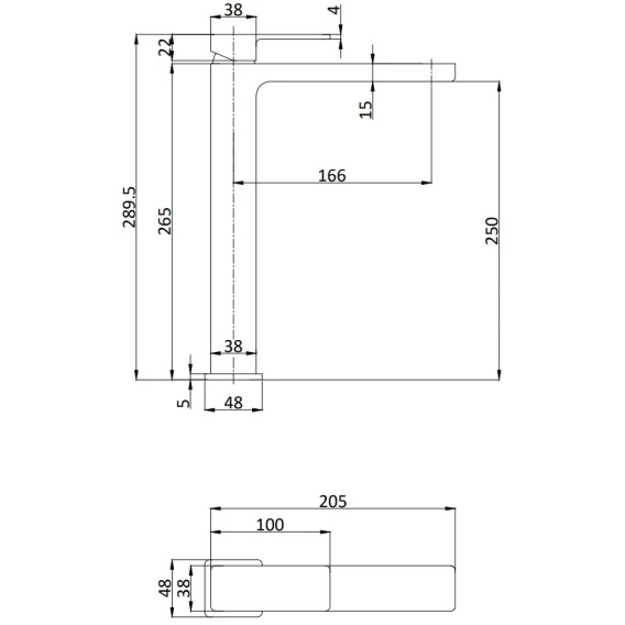 Длина излива 16.6 см
