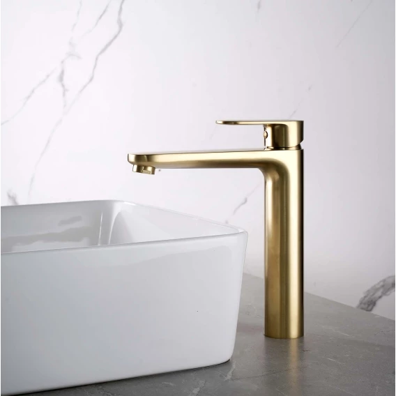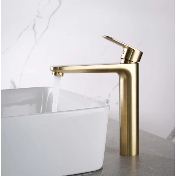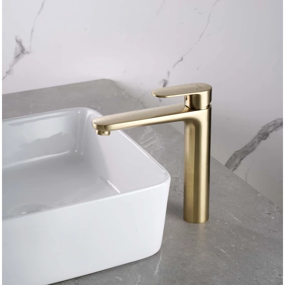 Смеситель для раковины Kludi Renon 42298N075 без донного клапана, золотой матовый