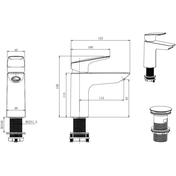 Крепление, Аэратор, Гибкая подводка, Донный клапан