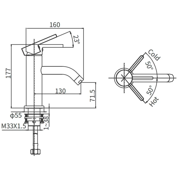 Смеситель для раковины Arrow AG4105 без донного клапана, хром