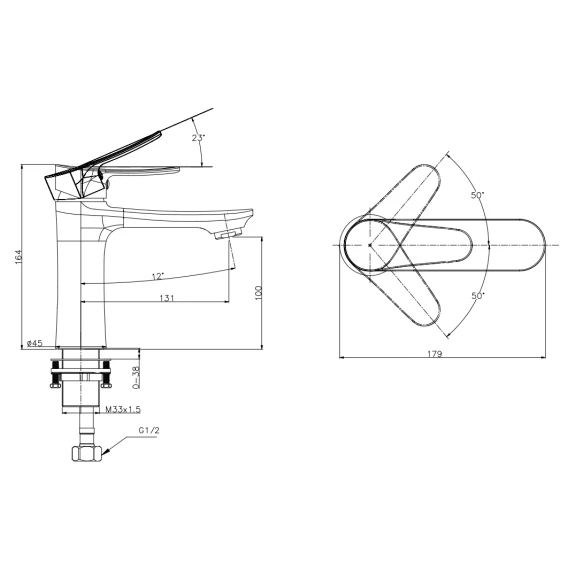 Смеситель для раковины Arrow AG4106 без донного клапана, хром