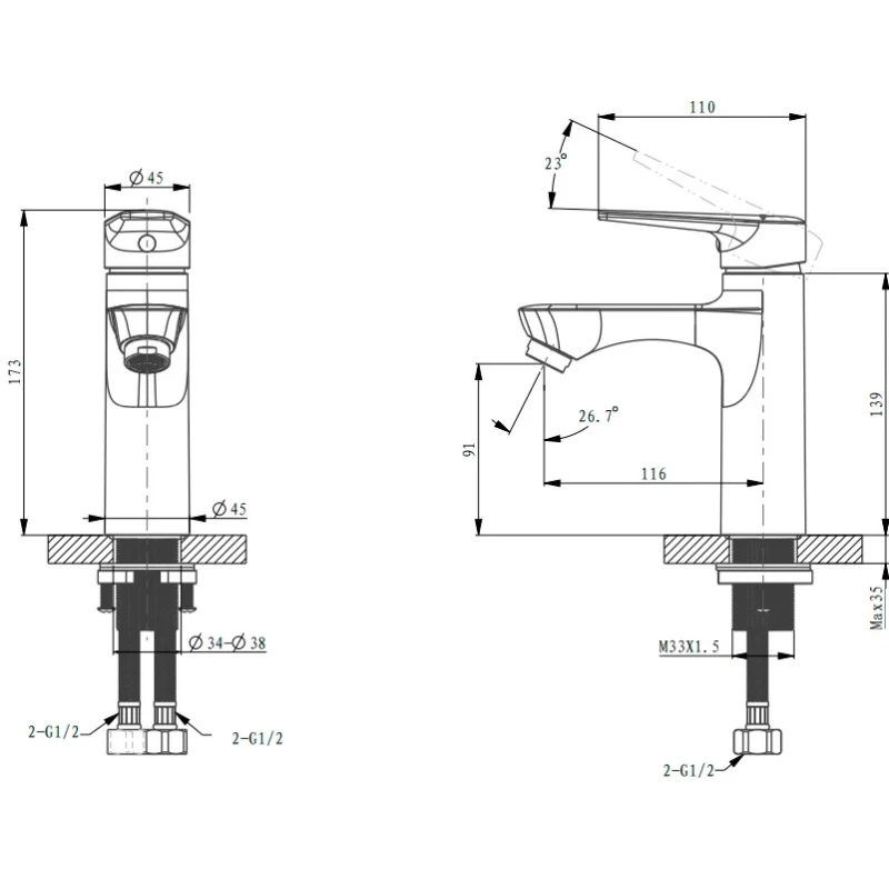 Смеситель для раковины Arrow AG4127MB без донного клапана, черный матовый