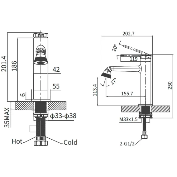 Смеситель для раковины Arrow AMP11855 без донного клапана, хром