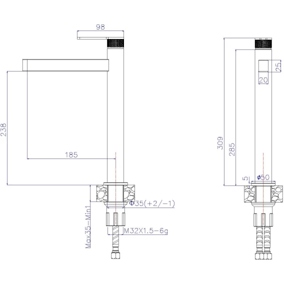 Высота излива 23.8 см