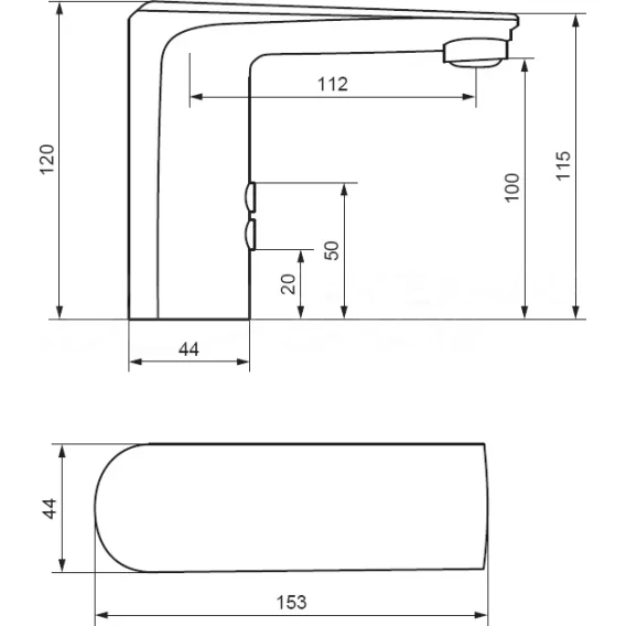 Клапан смешивания горячей и холодной воды с возможностью регулировки размещается под столешницей. Для включения воды достаточно поднести руки к смесителю. Дистанция срабатывания сенсора на расстоянии 10-30 см.