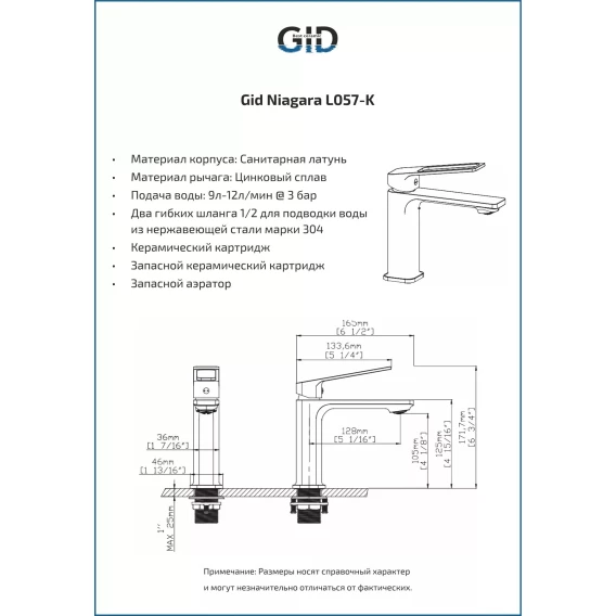 Смеситель для раковины без донного клапана GID Niagara L057-CH-K
