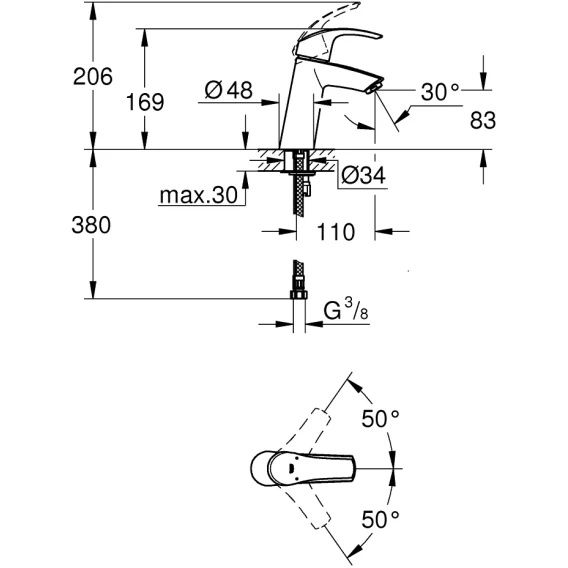 Смеситель для раковины без донного клапана Grohe Eurosmart 23324001