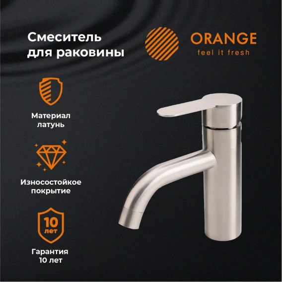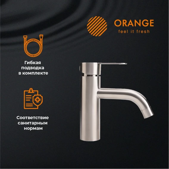 Смеситель для раковины без донного клапана Orange Steel M99-021ni