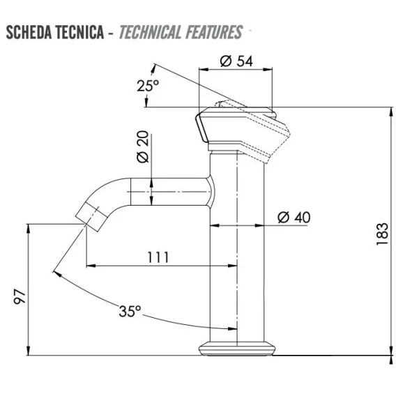 Смеситель для раковины без донного клапана Remer Element ET12RP