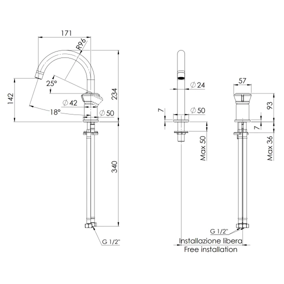 Смеситель для раковины без донного клапана Remer X Style X57RL