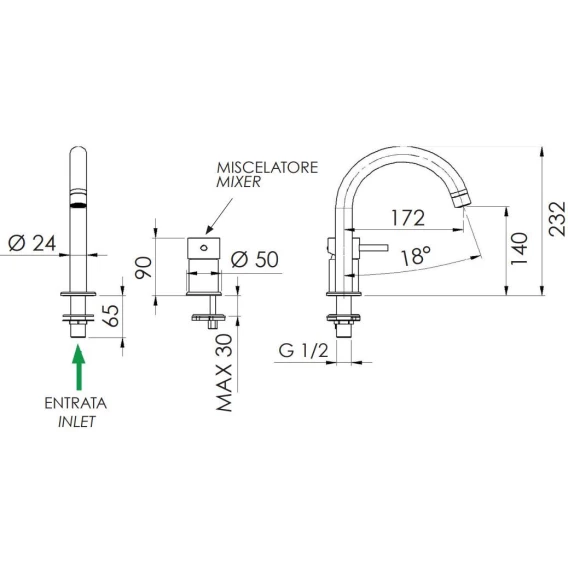 Смеситель для раковины без донного клапана Remer X Style X57BO