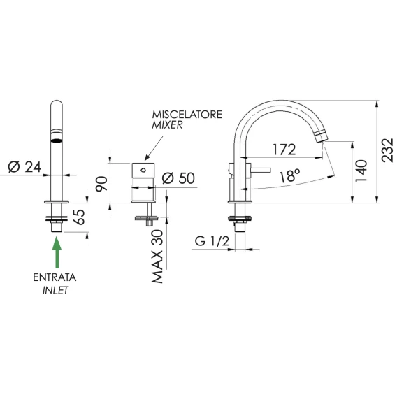 Смеситель для раковины без донного клапана Remer X Style X57XV
