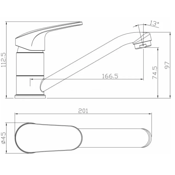 Длина излива 16.65 см