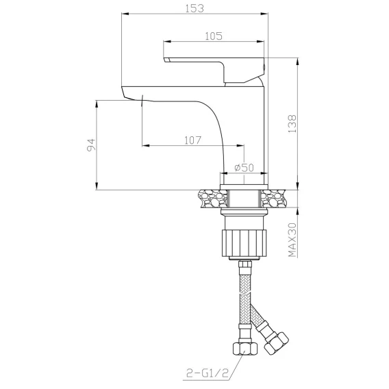 Смеситель для раковины без донного клапана Rossinka RS50 RS50-12
