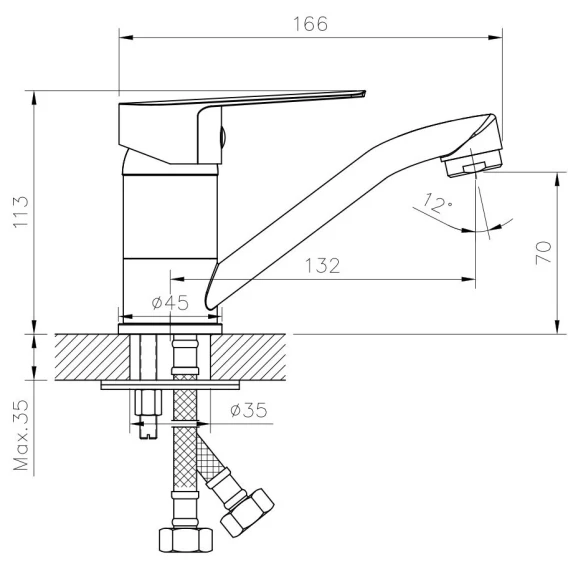 Смеситель для раковины без донного клапана Rossinka S S35-22