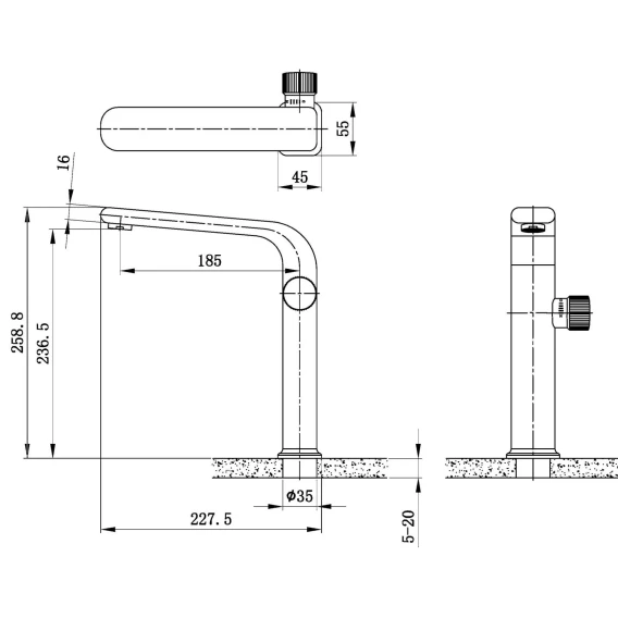 Длина излива 18.5 см