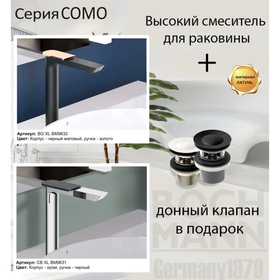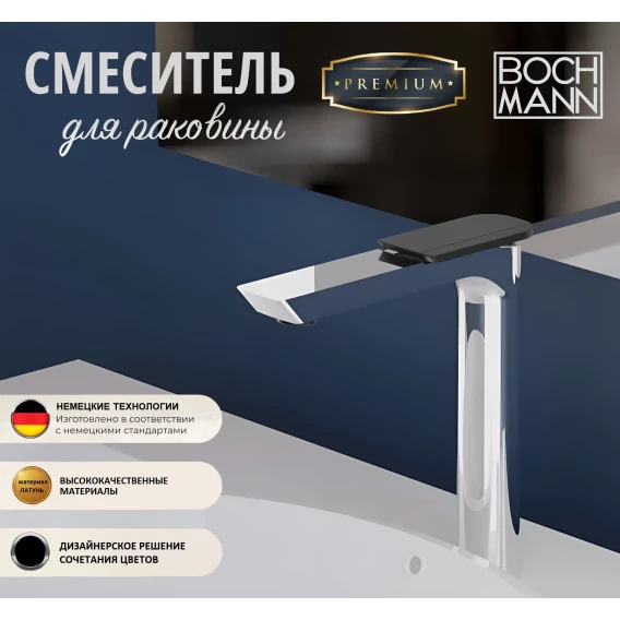 Смеситель для раковины Boch Mann Como BM9631 с донным клапаном, хром/черный