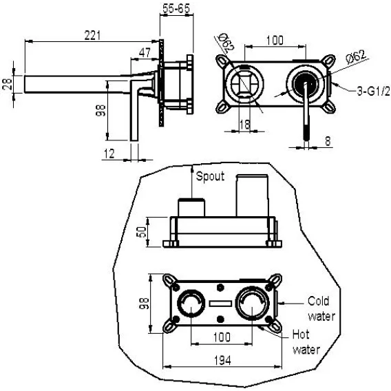 Длина излива 22.1 см