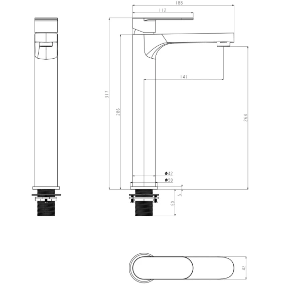 Длина излива 16.7 см