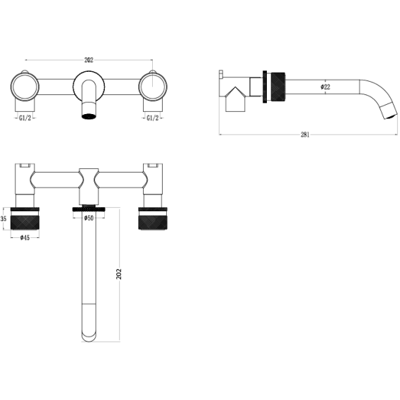 Смеситель для раковины Boheme Stick Touch 152-2-B.2 встраиваемый, черный матовый