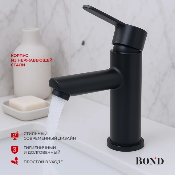 Смеситель для раковины Bond Smart B63-2188 без донного клапана, черный матовый