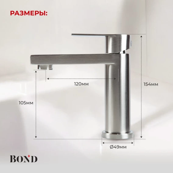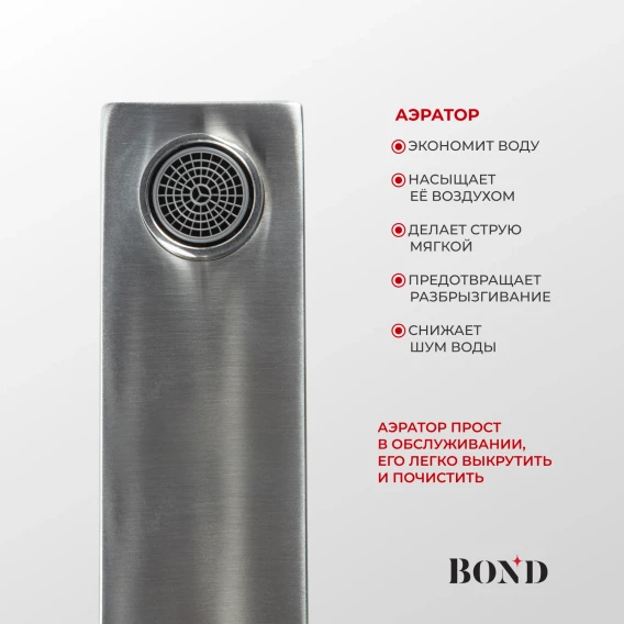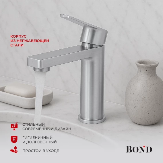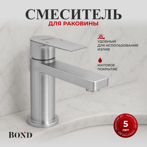 Смеситель для раковины Bond Smart B69-2100 без донного клапана, сатин