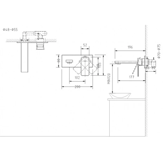 Смеситель для раковины Bravat Phillis P69183C-ENG встраиваемый, хром