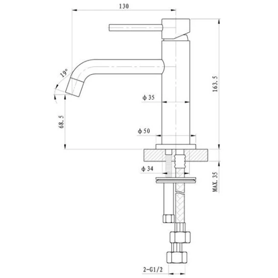Смеситель для раковины Caprigo Don 53-022-NER без донного клапана, черный матовый