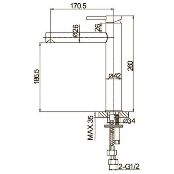 Смеситель для раковины Caprigo Don 53-023-CRM без донного клапана, хром