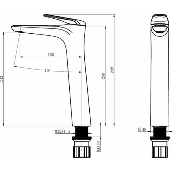 Высота излива 24.3 см