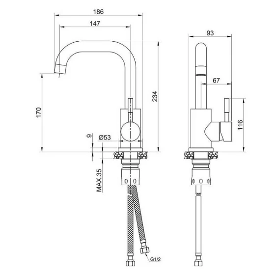 Смеситель для раковины Shevanik S9901T оружейная сталь