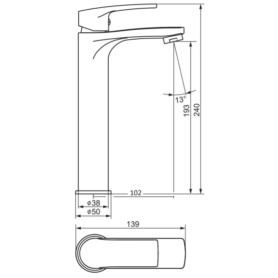 Высота излива 19.3 см