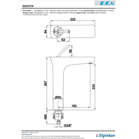 Смеситель для раковины E.C.A Novita 102108926HEX хром