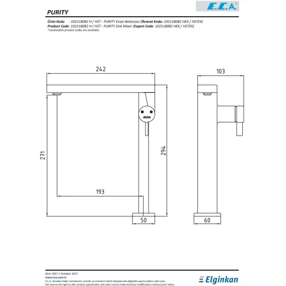 Смеситель для раковины E.C.A Purity 102118082HEX хром